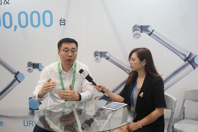 展會現場,優傲機器人銷售經理崔宏宇接受本站采訪。