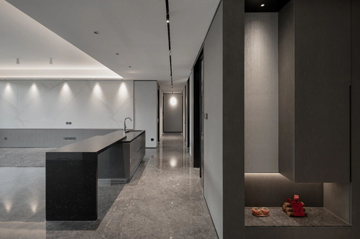 在圓明天頌高端住宅項(xiàng)目中,三雄極光旗下鉑刻照明團(tuán)隊(duì)將“光健康”理念貫穿設(shè)計(jì)全程。公共區(qū)域采用約3000K的暖色溫以營(yíng)造居家溫馨感,并應(yīng)用微棱鏡擴(kuò)散板等防眩光技術(shù),致力于打造無(wú)眩光干擾的舒適光環(huán)境。