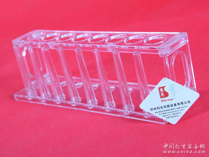1.產品為8孔型式,由試管孔板、支撐板、試管棒、底座組成,采用透明聚碳酸酯注塑成型;
