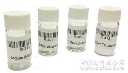 產品詳細介紹針對NY/T 761-2008標準及GB23200.112-2018標準中氨基甲酸酯類農藥殘留測定用——分析包 氨基甲酸酯類農藥殘留測定用衍生試劑包(P/N:YS-CB-001): R312:OPA稀釋液(粉末) R315:水解液(固體顆粒) R301:OPA R302:巰基乙醇 1套(包含以上試劑)可配置成1000ml衍生劑