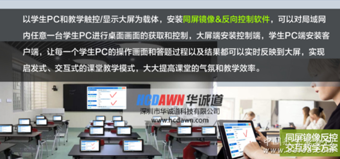 產品詳細介紹同屏鏡像及反向控制軟件適合于會議、教學、展廳等需要主機對多個客戶端遠程分別訪問和遠程控制的場景,實現靈活的同屏顯示和遠程操作(鼠標、鍵盤操作)。高清畫面實時同屏,適合文檔和圖片同屏演示;低CPU占用率、適合移動筆記本和平板長時間演示; 大屏端可對任意一個客戶端界面進行鍵盤輸入和鼠標操作 。 人性化設計 友好的操作界面,支持觸摸和鼠標控制,一鍵連接遠程PC,直接控制局域網內任意一臺PC