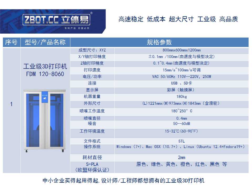 立體易FDM-120-8060超大尺寸工業級3D打印機