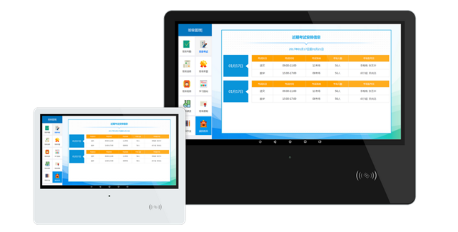 屏幕尺寸:21.5英寸16:9高清觸摸屏,外觀黑白兩色可選,橫豎版可選。 設置刷卡模塊支持非接觸刷卡。 前置高清攝像頭可在刷卡同時抓拍圖像。 可為學校定制外觀logo,將logo印制到指定位置。 超薄壁掛設計,一體化成型外殼,鋼化玻璃保護 采用高級電容觸摸技術,多點觸摸,無需激活力(觸摸系列) 電子班牌屏幕表面保護,硬度莫氏7級 屏保觸摸激活功能(觸摸系列) 零維護設計,遠程自定義電子班牌的開關機時間、重啟、音量調節,無需人工干預 高性能運行配置 可完美支持PPT、WORD、EXCEL等OFFICE文件的導入播放 支持各種多媒體格式,包含:MKV, AVI, RM、WMV、JPEG, BMP、PNG、MP3等 產品特性 結構設計: 1)純平面結構,人體工程學設計,纖巧美觀、流線造型、工藝精良; 2)顯示、觸控、 PC 系統一體化超薄設計,僅厚 29 mm; 3)橫版、豎版可選;外觀顏色黑色、白色可選。 使用效果: 1)采用點控最新研發的投射式電容屏,完美 10 點觸摸,支持手寫及多點手勢; 2)觸摸速度小于 3ms,精確度好,使用簡單便捷、易于維護; 3)抗光干擾,確保操作的準確性(強光直射照常使用); 4)擴充性好:配置靈活,可擴充安裝客戶需求的各種功能配件; 5)安全性高:鋁合金+鈑金結構,無銳利邊緣,耐磨防腐烤漆工藝,整體防暴設計; 6)性能穩定:先進的設計理念,嚴格的生產工藝,產品品質穩定可靠,故障率低; 7)安裝簡便:通電一鍵開關機,免除現場安裝調試。 系統設計 1)輸出(一體機) 內部電腦 HDMI 或 VGA 輸出 2)輸入(觸顯) 支持 VGA、 HDMI 輸入 3)觸摸功能 全新投射式電容屏, 10 點觸摸,支持多點手勢; 4)顯示 PC 全高清 HDMI 信號 1080P 5)支持2-4路繼電器輸出 6)自帶溫濕度傳感器,支持教室或者實驗室的實時溫濕度顯示; 7)可現實PM2.5甲醛、溫濕度、氣壓及顆粒物濃度顯示; 8)PC 視頻解碼 1080P 全高清( Full HD) MPEG、 H.264 等 9)結構設計 鋁合金邊框,鈑金后殼,散熱合理,可選配獨立設計的底座 10)系統模塊 PC、顯示、觸摸一體,一鍵開關機 11)設置刷卡模塊支持非接觸刷卡。 12)前置高清攝像頭可在刷卡同時抓拍圖像。 13)可為學校定制外觀logo,將logo印制到指定位置。 14)超薄壁掛設計,一體化成型外殼,鋼化玻璃保護 15)采用高級電容觸摸技術,多點觸摸,無需激活力(觸摸系列) 16)電子班牌屏幕表面保護,硬度莫氏7級 17)屏保觸摸激活功能(觸摸系列) 18)零維護設計,遠程自定義電子班牌的開關機時間、重啟、音量調節,無需人工干預 19)高性能運行配置 20)可完美支持PPT、WORD、EXCEL等OFFICE文件的導入播放 21)支持各種多媒體格式,包含:MKV, AVI, RM、WMV、JPEG, BMP、PNG、MP3等 液晶屏參數 1)屏類型 a-Si TFT-LCD 背光 液晶屏 A 規 2)尺寸 21.5 英寸(16:9) 3)顯示區域 476. 64 (H)×268.11 (V) 4)最佳分辨率 1920*1080 5)亮度 ≥ 250cd/m2 對比度 ≥ 1000: 1 觸摸屏參數 1)觸摸技術 投射式電容技術(電容觸摸屏) 2)響應時間 < 5ms 3)觸摸點數 標配 10 點觸摸,可實現放大縮小圖片等多點觸摸功能 4)觸摸有效識別 > 1.5mm 5)掃描頻率 200Hz 6)掃描精度 4096×4096 7)通信方式 全速 USB 2.0,3.0 8)理論點擊次數 5000 萬次以上 9)工作電流/電壓 180Ma/DC+5V±5% 10)抗光干擾 陽光、白熾燈、日光燈等強光變化時正常使用 11)觸摸數據輸出方式 坐標輸出 12)表面硬度 物理鋼化,莫氏 7 級防爆玻璃 13)操作系統兼容性 Android 14)固件 可升級,驅動 免驅,即插即用 讀卡器( RFID) 1)支持卡片 支持 Mifare 標準, S50 和 S70 等 14443A 協議卡/15693 協議/ICODE2芯片卡 2)操作系統:Windows98\XP32\XP64\2000\CE\7\ME\NT\LIUNX\Vista32\Vista64 3)讀卡器支持的協議:Android協議支持 14443A 協議、 15693 協議、 14443A&15693 協議 4)讀卡距離 0~80mm(不同卡識別距離有差異)、讀卡時間 <100ms、讀卡速度0.2s 攝像頭 1)光圈 2.8、焦距 1.6mm、視場角 130°、TV 畸變 <-5%、感光區尺寸 1/5-inch 2)像素點尺寸 1.75μ m×1.75μ m 3)圖像尺寸 1616(H)×1232(V)[像素] 4)裝配角度 平出 電源參數 1)輸入電源 100-240V~ 50/60Hz 2)整機功耗 48W、待機功耗 ≤3W 3)音頻輸出功率 4Ω 3W×2 環境因素 1)操作溫度 -5℃~45℃(屏的操作溫度為 0℃-40℃) 2)操作濕度 30%~85% 3)存儲溫度 -20℃~60℃ 4)存儲濕度 10%~90% 5)海拔高度 5000 米以下 物理規格 1)屏幕 21.5 寸 (對角線 548.9 mm) 2)有效顯示尺寸 478×269.8 mm ( 16: 9) 3)整機尺寸 橫版:(寬×高×厚)426(寬) ×527(高)× 29(厚)mm 豎版:(寬×高×厚)328(寬) ×595(高)× 43(厚)mm 4)底架 標配壁掛架(凈重 0.48kg),可選配底座 5)背部壁掛與機器連接的孔位尺寸(長×寬) 100×100 mm壁掛螺絲規格 M4 6)凈重(裸機) 觸顯 6.25 kg,一體機 6.78kg毛重(包裝) 8.35 kg 安全警告 1)該產品屬于精密電子設備,防護等級為 IPX2 應注意避免水濺雨淋; 2)不可將設備放置在潮濕的環境中,戶外的設備需要增加防潮罩,下雨、結露時需要做好防護免水霧進入機器和玻璃發霉。潮濕的使用環境會加快電子元器件的快速老化,從而降低使用壽命,造成部件受潮損壞; 3)不可將設備長時間放置紫外線較強和太陽直射環境下。氣溫高于 40℃時,紫外線和高溫照射屏幕會加速液晶分子的偏轉,屏幕會加速老化,當室外溫度高于 40℃時搬到室內或進行遮陽處理; 4)產品亮度不低于 200cd/㎡,在環境亮度高的情況下,屏幕顯示會不清晰,請避免在太陽光強烈時放在室外; 5)氣溫低于 0℃時,由于液晶分子偏轉受到影響,屏幕不能正常工作,不建議低于 0℃時開機; 系統拓展 1)可添加班牌APP系統實現無卡操作 2)可對接校園一卡通系統(包括校園宿舍管理、門禁系統、考勤系統
