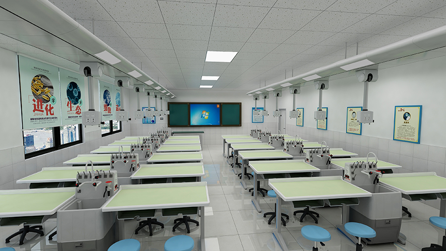 引入國(guó)際先進(jìn)理念,革新傳統(tǒng)實(shí)驗(yàn)室建設(shè)施工過(guò)程,徹底消除管線鋪設(shè)繁多、教室地面被破壞,不同學(xué)科實(shí)驗(yàn)室對(duì)樓層要求嚴(yán)格等弊端,施工方式從地面(隱蔽)走向頂部(開放),充分解放教室地面,為教室承載更多功能提供可能。