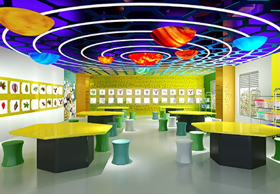 科學探究室是典型的學科教室,承載更多的育人功能,以服務于學生學習為宗旨的學習資源和實驗器材及設備的配置要求離學生最近,而且保持開放性。萊博士STEM——科學探究室通過提供適合小學科學教學方式的學科特制桌椅、科普窗簾、開放式的展示柜/架等專業環境搭建,滿足小學科學教學和探究活動的開展。