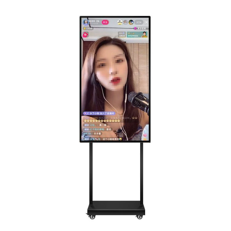 尺寸:32-43-50-55寸 直播大屏:手機直播因為距離過遠,需要頻繁低頭看面前的小手機,使直播體驗感不好,直播機可以清晰展示粉絲互動留言,還可以題詞,播放直播腳本信息等,提高了直播效率,粉絲互動性。 高清大屏,分辨率高清1920*1080,色彩絢麗,播放清晰流暢。 橫屏豎屏,隨意切換顯示,搭配移動支架,方便移動。 多臺手機同步投屏,支持無線有線。 直播培訓,內置白板軟件,隨意書寫批注。 豐富接口,擴展功能。 支持抖音,快手,虎牙多平臺直播。 機器邊框采用金屬拉絲工藝,4mm鋼化玻璃防刮防爆屏。 支持app,應用各種應用下載 使用場景:帶貨直播,游戲直播,網課直播,才藝直播,駕考培訓直等。
