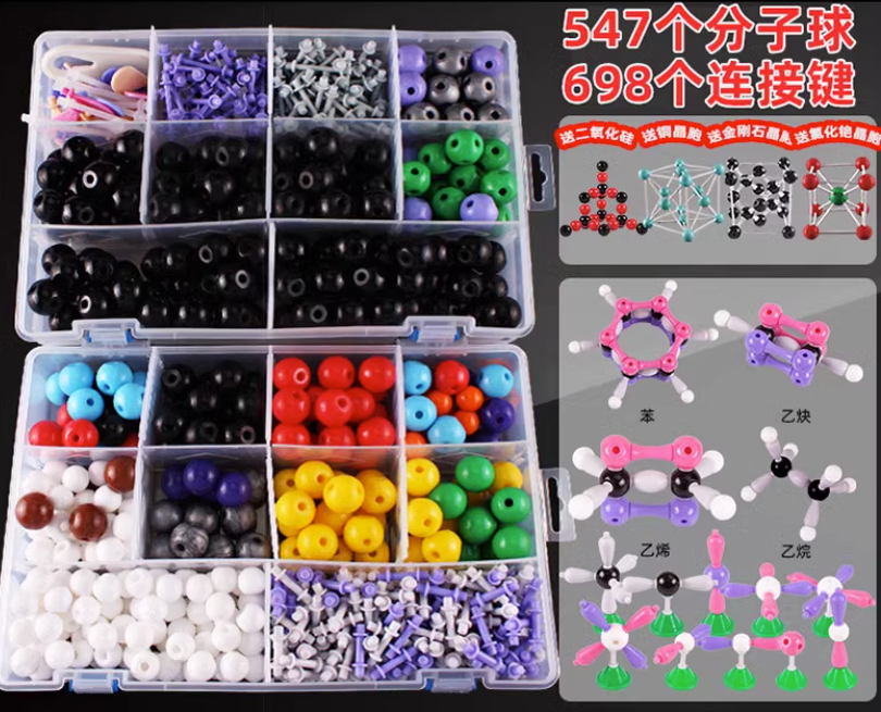 產品詳細介紹可拼分子軌道模型、可拼電子云雜化軌道模型、氯化艷晶胞模型、金剛石晶胞模型、碳60模型、銅晶胞模型、電子云插片18片 (米色、粉色、紫色各6片)、黑球6孔2個,黃球3孔2個,可搭乙烯乙快成鍵和VSEPR模型