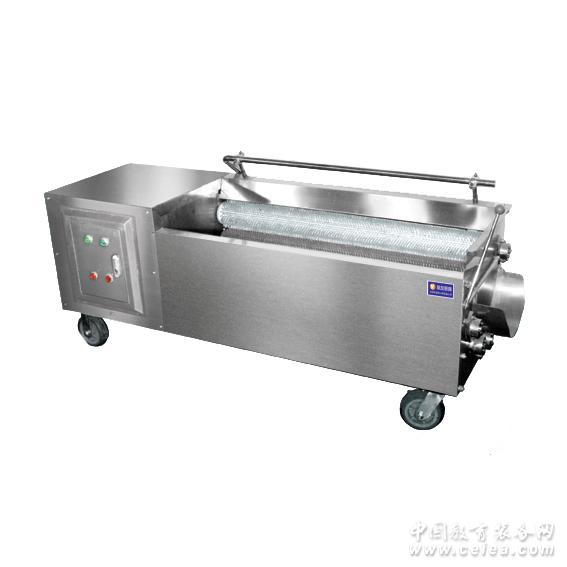根莖洗菜機(jī)由傳動(dòng)箱、洗滌箱、出料口三部分組成,其表面全部為優(yōu)質(zhì)不銹鋼制造,下部設(shè)有行走輪。